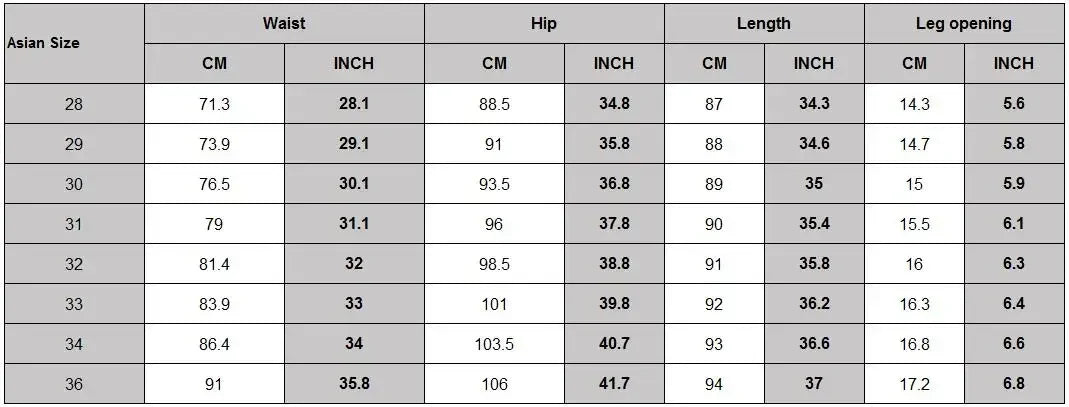 | S | 90–95 | 35–37.5 | 74–79 | 29–31 | Trim fit |