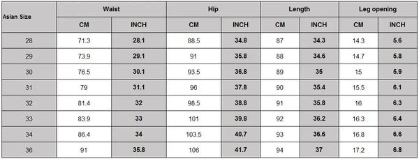| Size | Chest (cm) | Chest (in) | Waist (cm) | Waist (in) | Notes |
