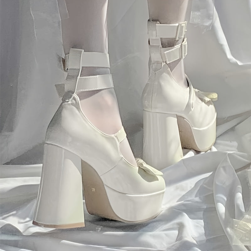 Elegant Women's Bow High Heels with Block Heel