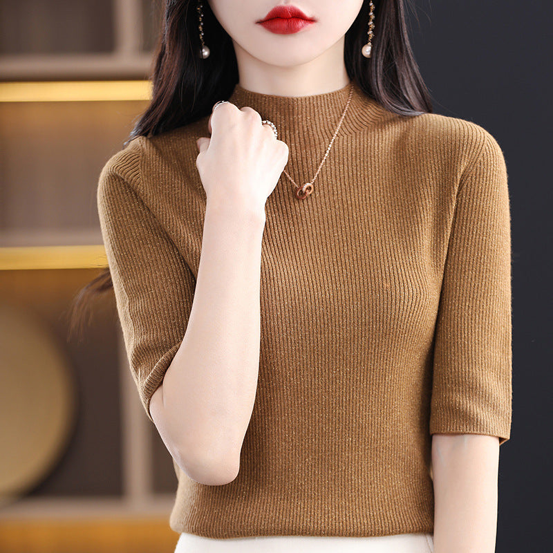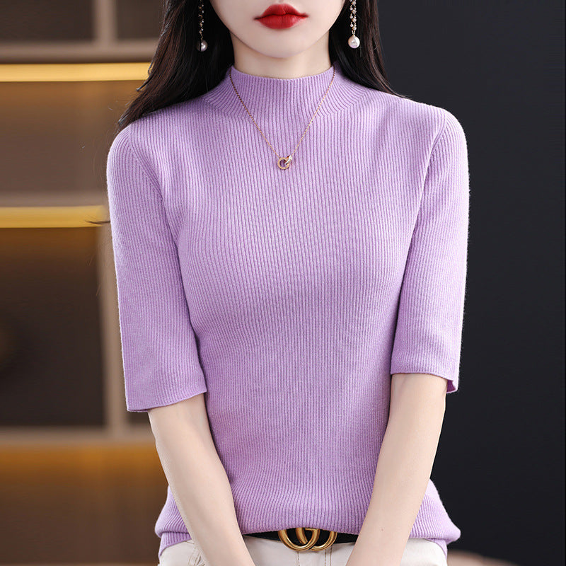 Fashionable Half-Sleeve Turtleneck Women's Sweater for Spring