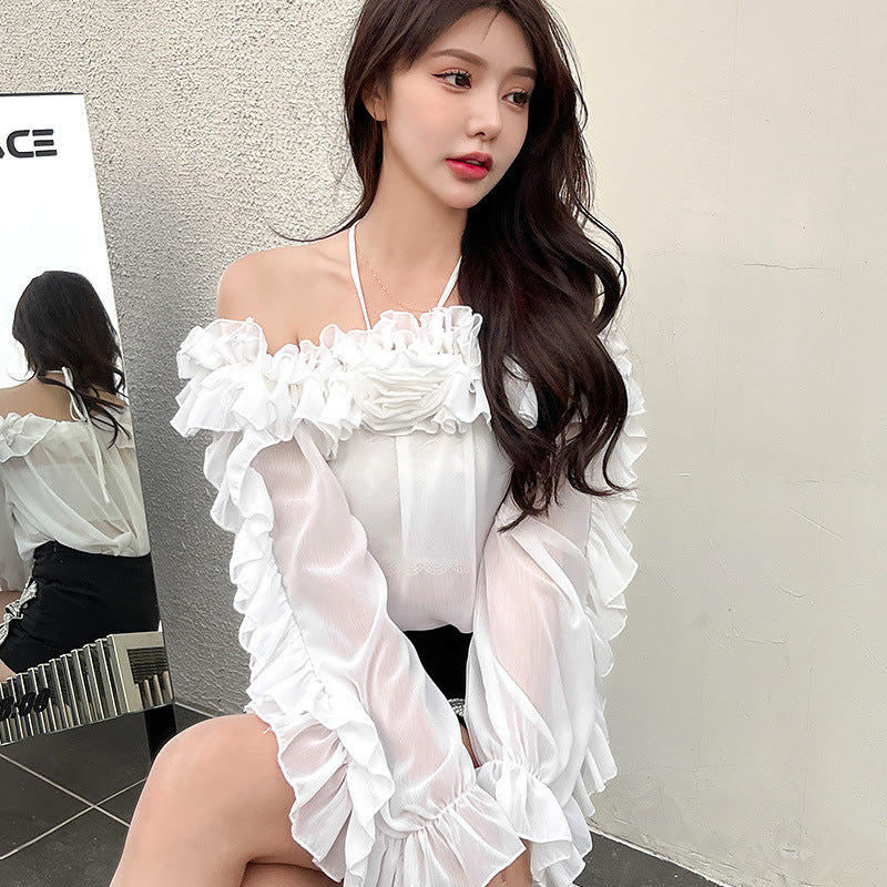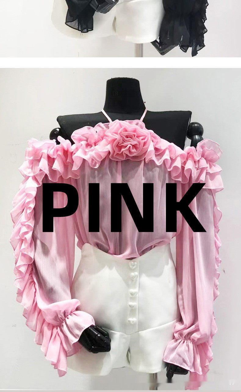 Flirty Off-Shoulder Chiffon Top in Long Lantern Sleeve Design