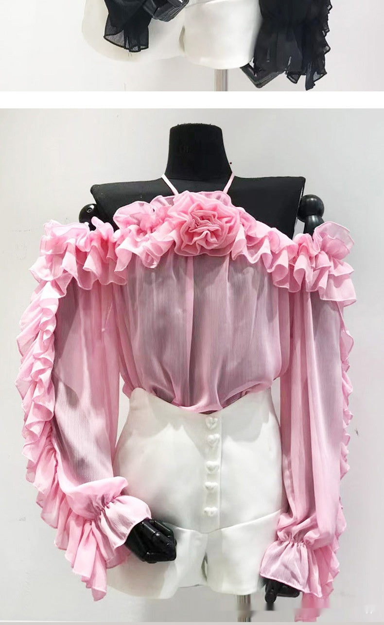 Please note that items may appear slightly different in color due to variations in computer display settings. This package includes one Flirty Off-Shoulder Chiffon Top.