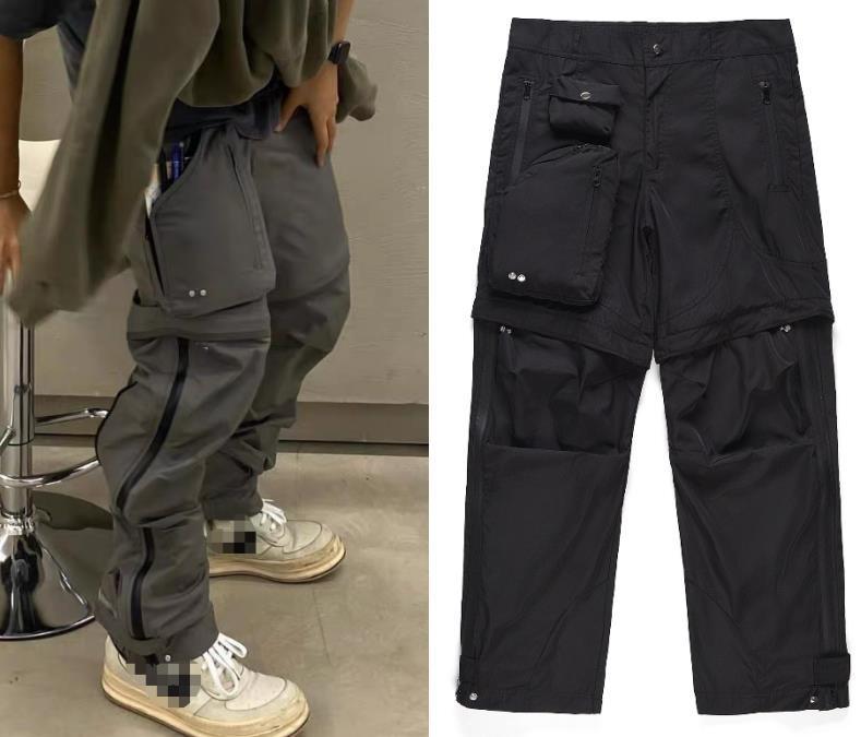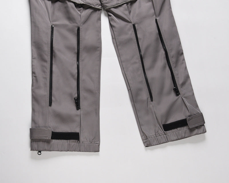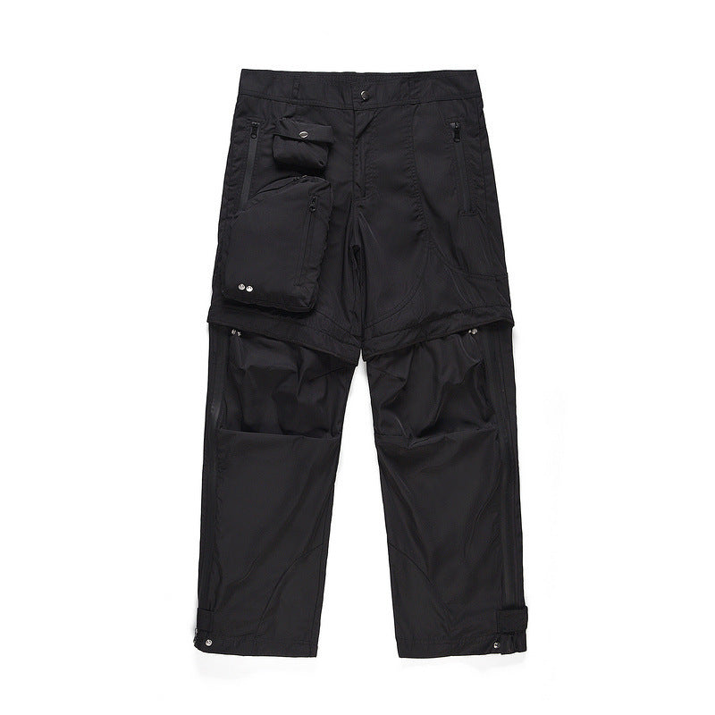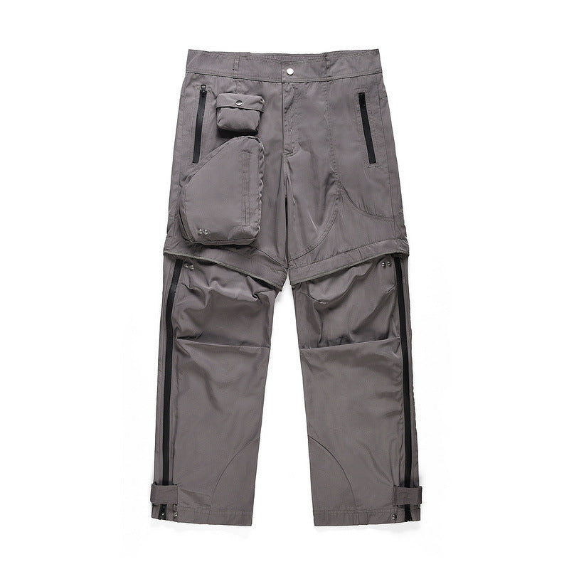 Functional Zip Nylon Trousers with Detachable Pockets in Acrylic - Black/Grey Mid-Waist Skinny Fit - Menswear - Casual Wear