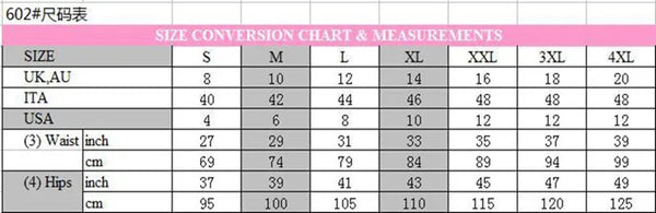 | Size | Bust (cm) | Bust (in) | Waist (cm) | Waist (in) | Hips (cm) | Hips (in) | Notes |