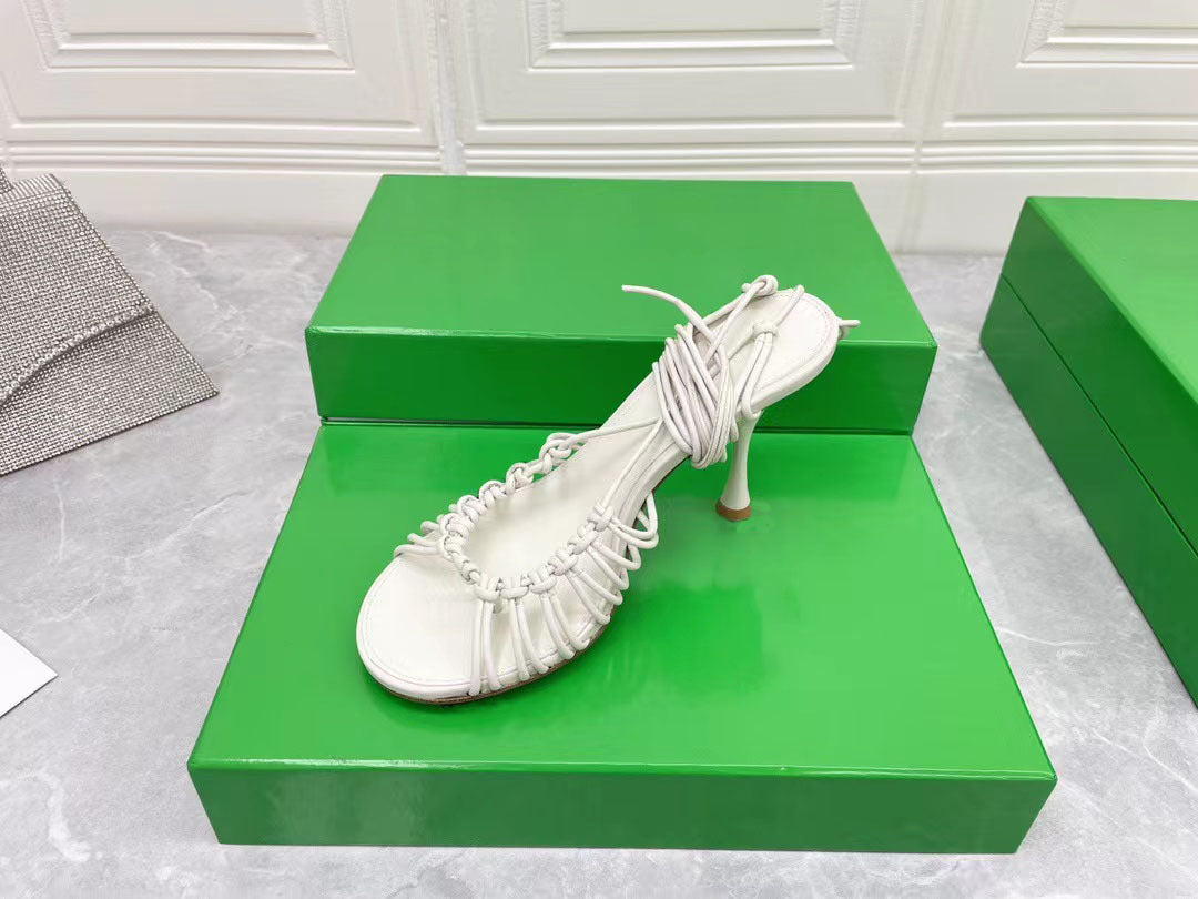 Luxurious Sheepskin Lace-up High Heel Sandals - Elegant Stiletto Style in Various Colors