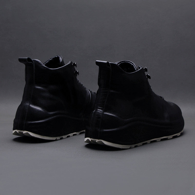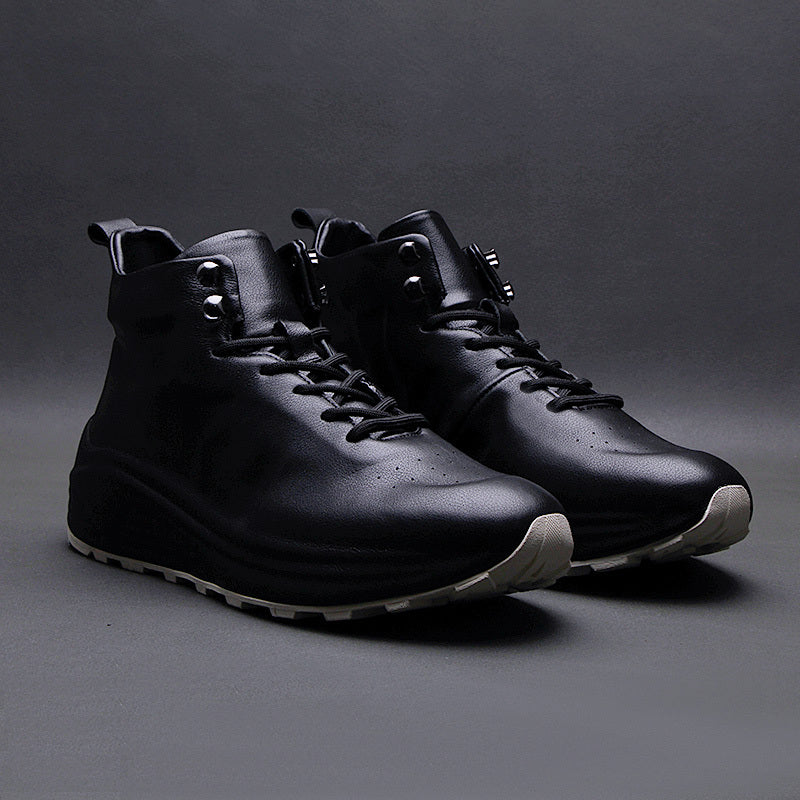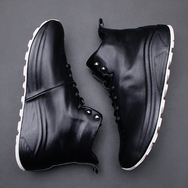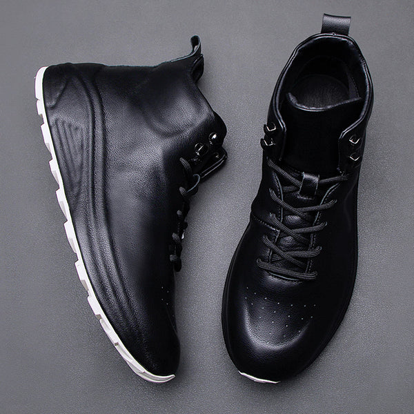 Men's Casual Sporty Fashion Sneakers with Thick Soles in White and Black - Premium Leather Men's Sneakers for Comfort on the Go