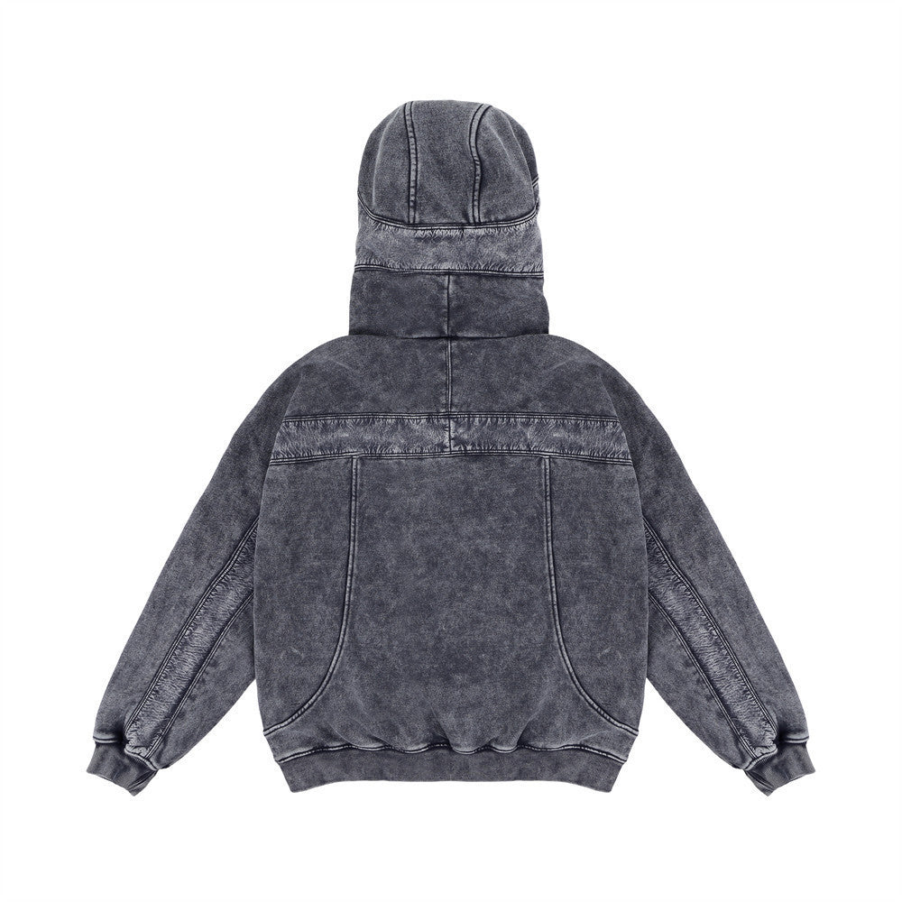 Stay fashionable and warm with our Distressed Hooded Sweater for men. This loose-fitting, split-stitched pullover features an embedded-line pocket style that adds an extra touch of chic, street fashion.