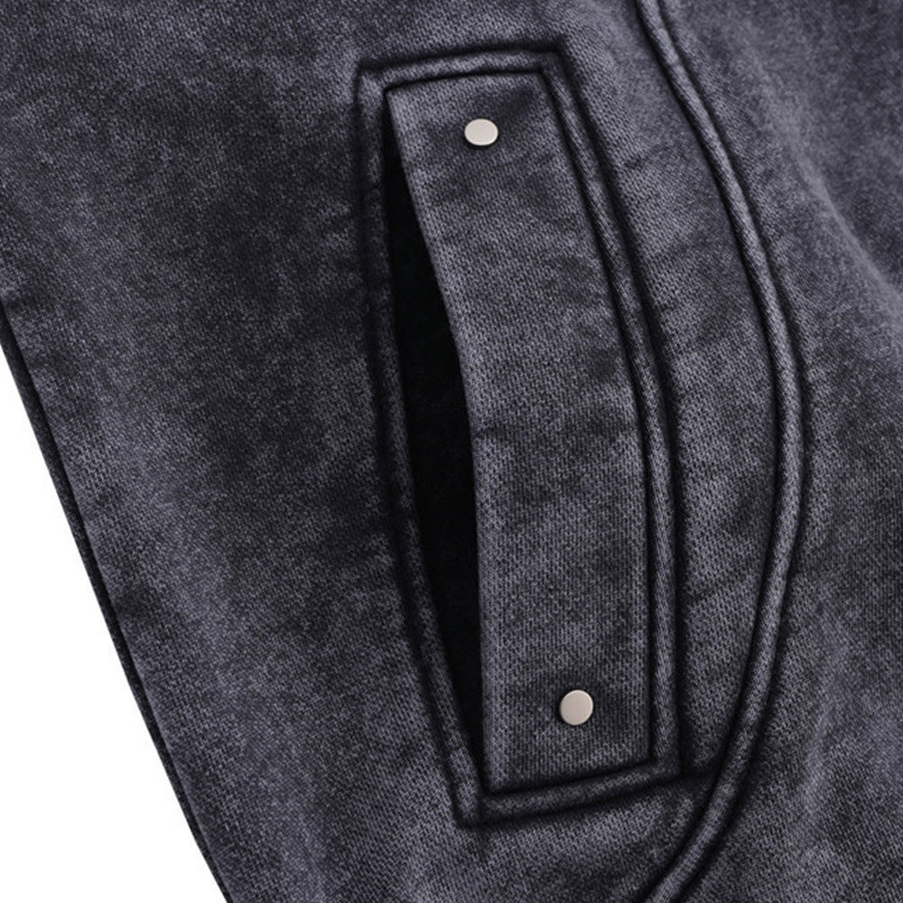 Men's Distressed Hooded Sweater in Grey, Fleece-Lined Pullover for Fall and Winter