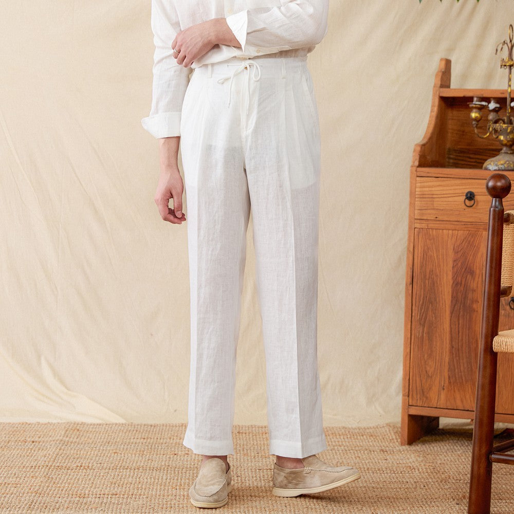 Men's Lightweight Linen Trousers in White - Summer Casual Wear