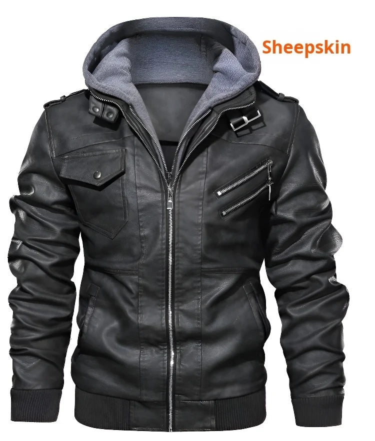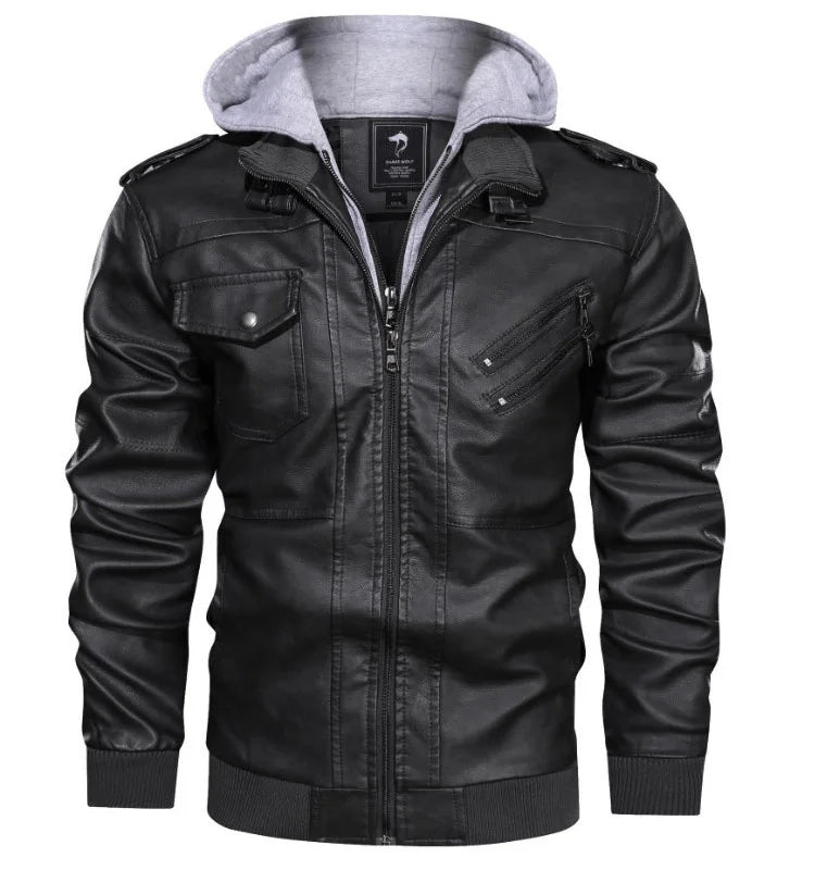 Men's PU Leather Hooded Jacket - Warm Autumn & Winter