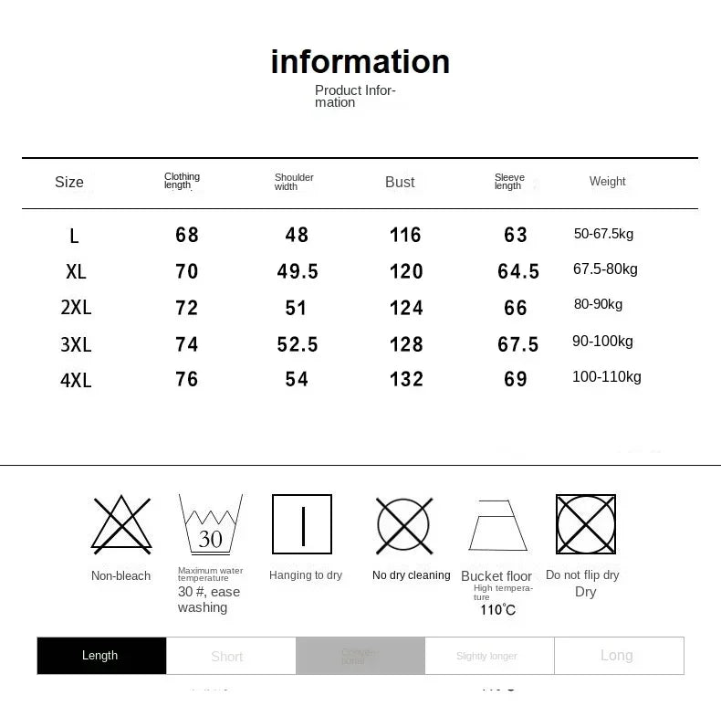 | 3XL | 122–128 | 48–50.5 | 108–115 | 42.5–45.5 | Extended |