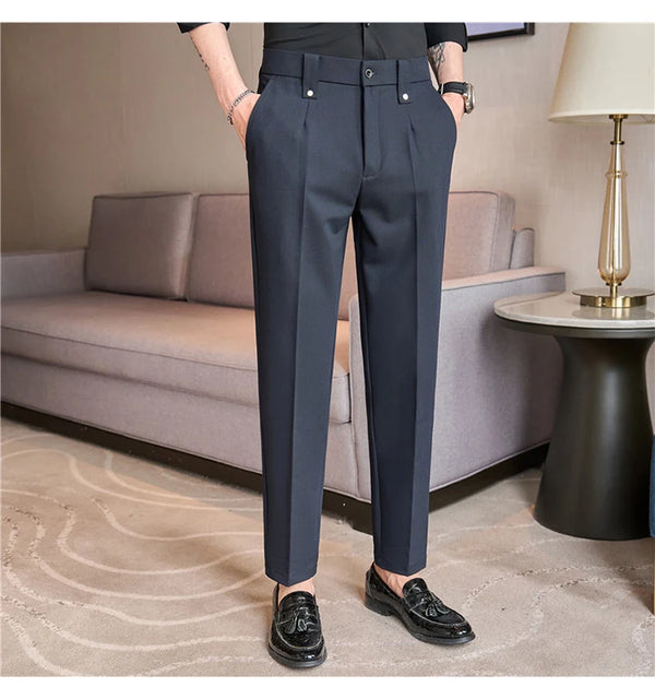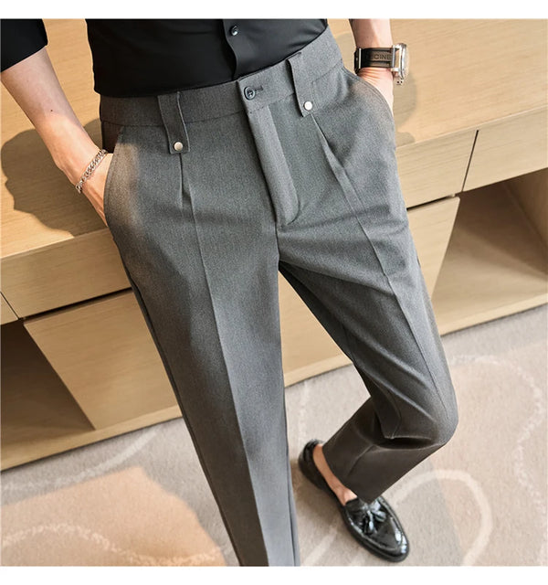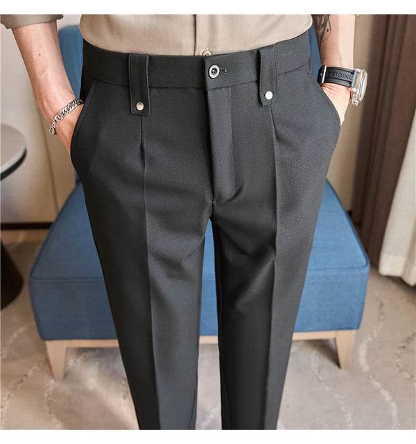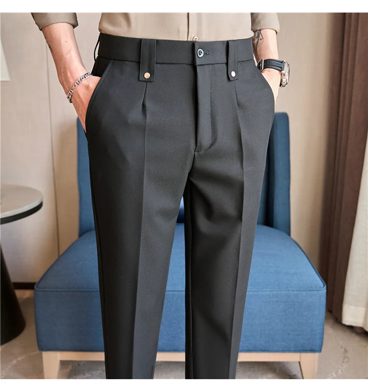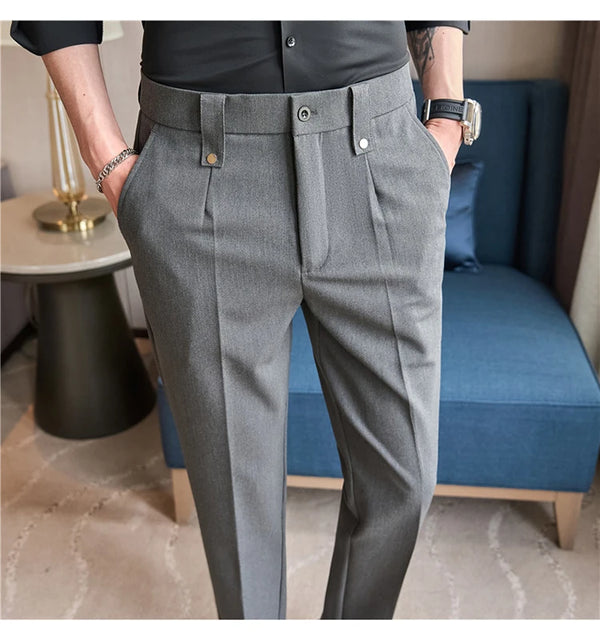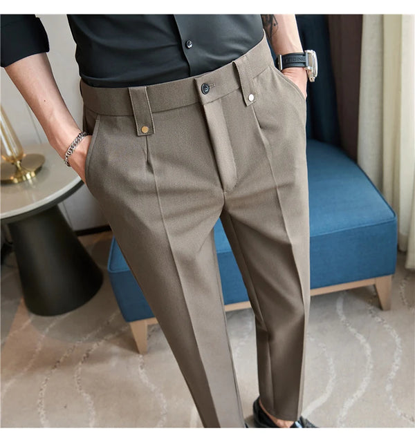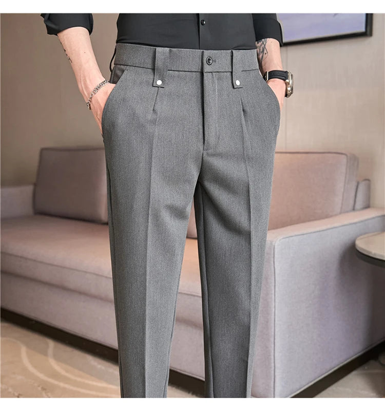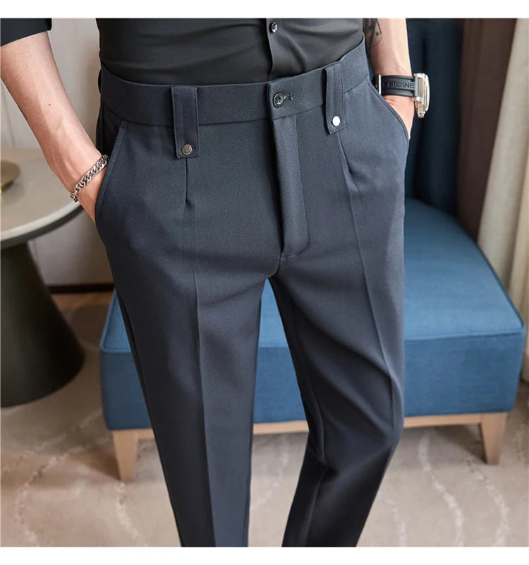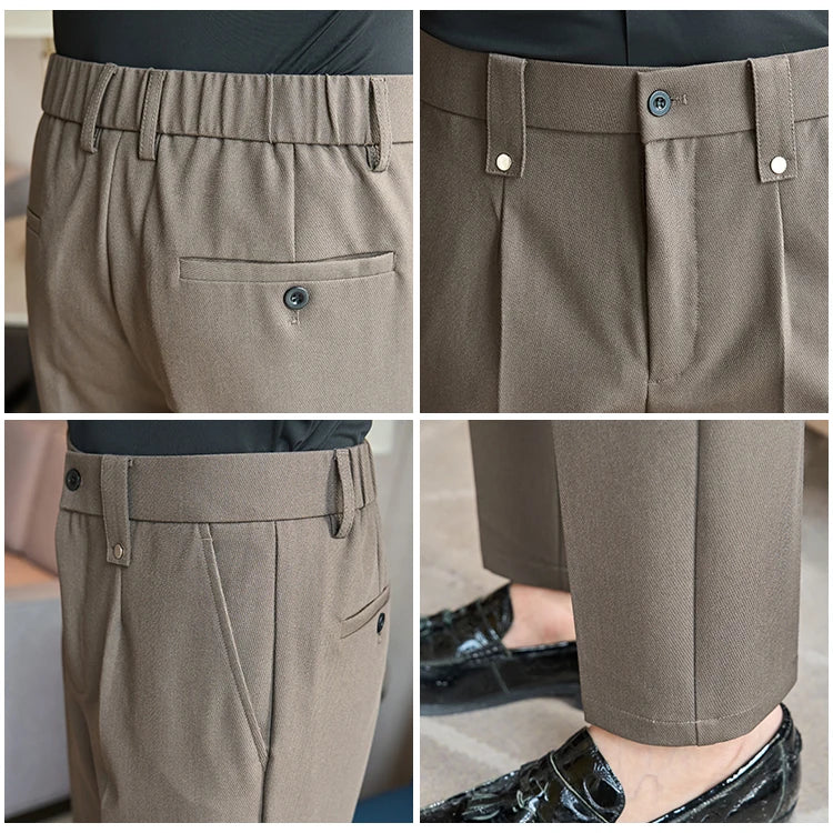 Men's Slim Fit Dress Pants – British Style, Elastic Waist