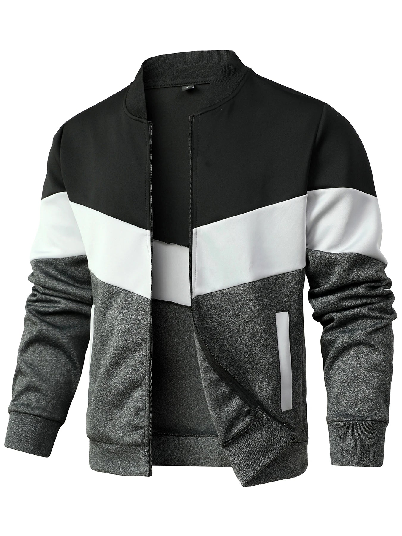 Men's Trendy Color Block Bomber Jacket - US Sizes