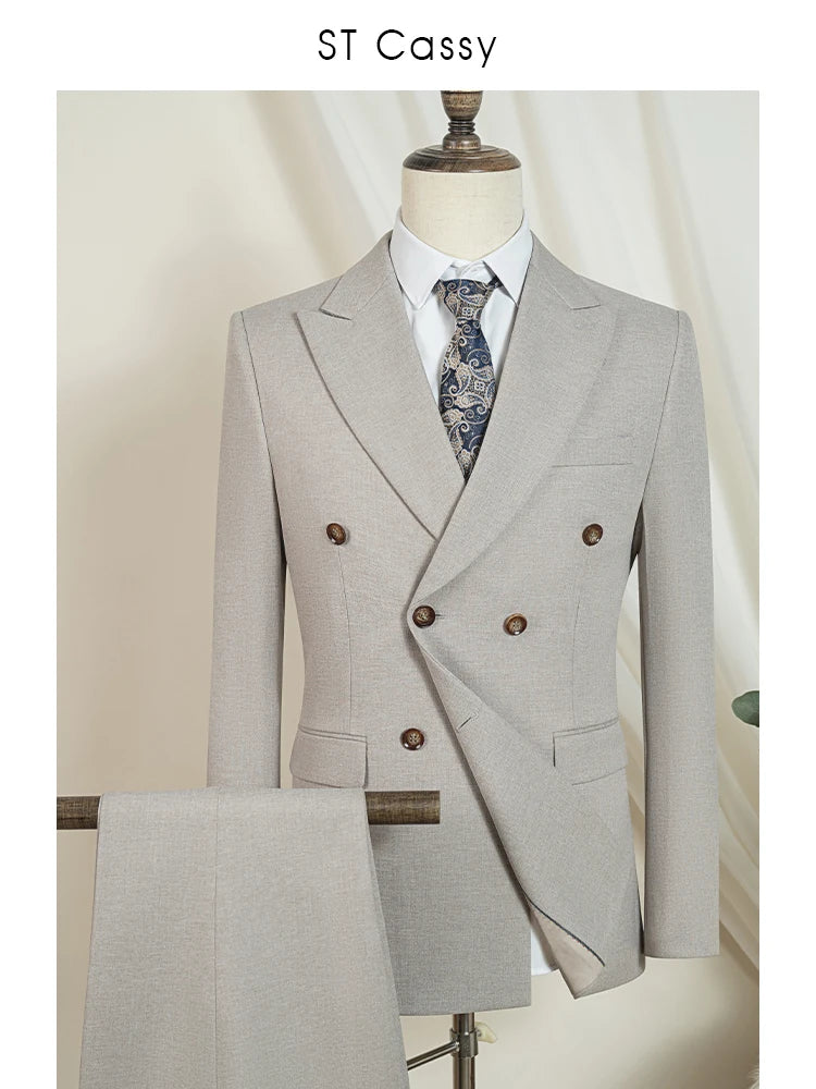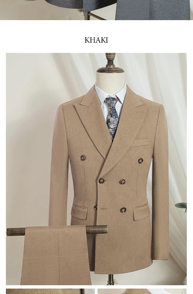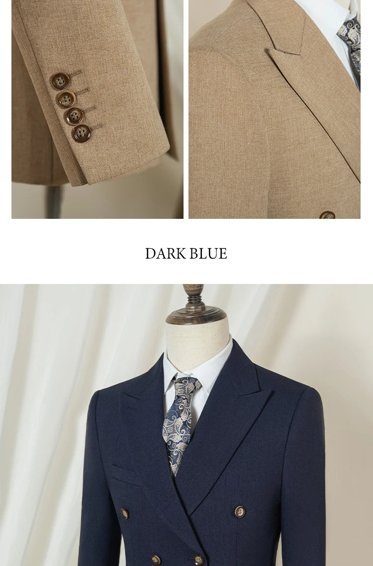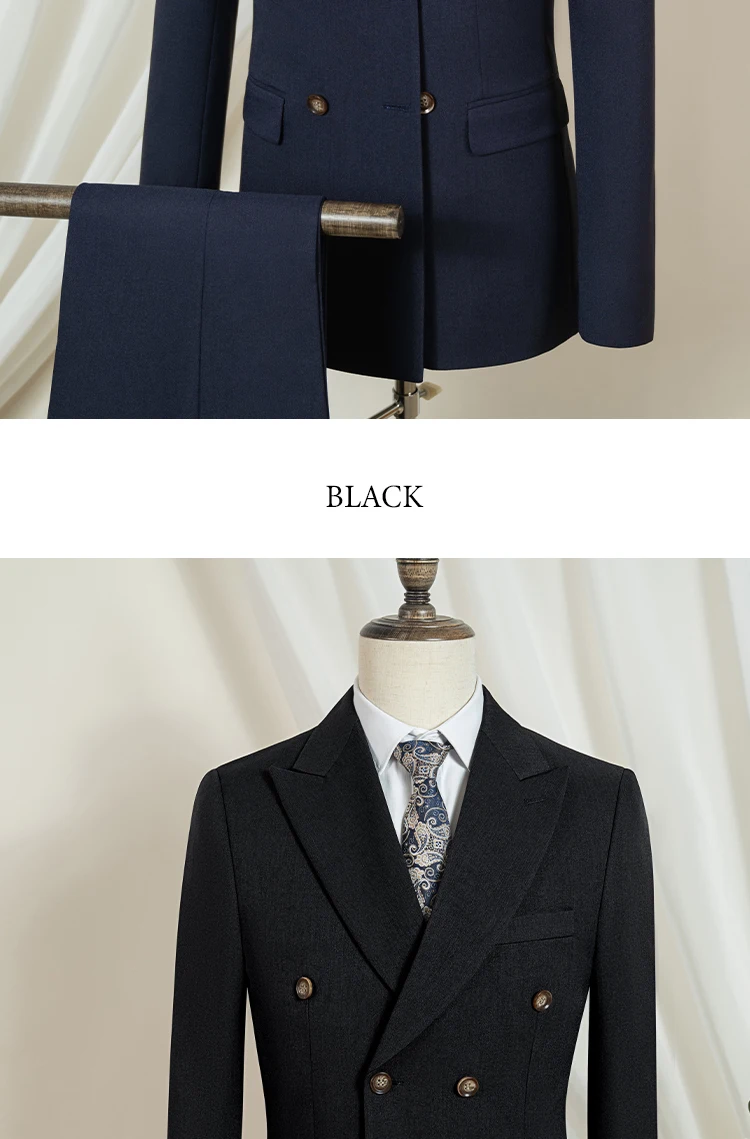 Introducing the Midnight Poise Suit, meticulously crafted to ensure you're not just dressed, but distinctly dressed. With a slim, double-breasted design, this suit molds to your frame, offering a sleek, tailored profile that whispers quiet power and undeniable sophistication. The rich, dark blue hue speaks of deep oceans and twilight skies, perfect for making a memorable impact at both weddings and pivotal business meetings.