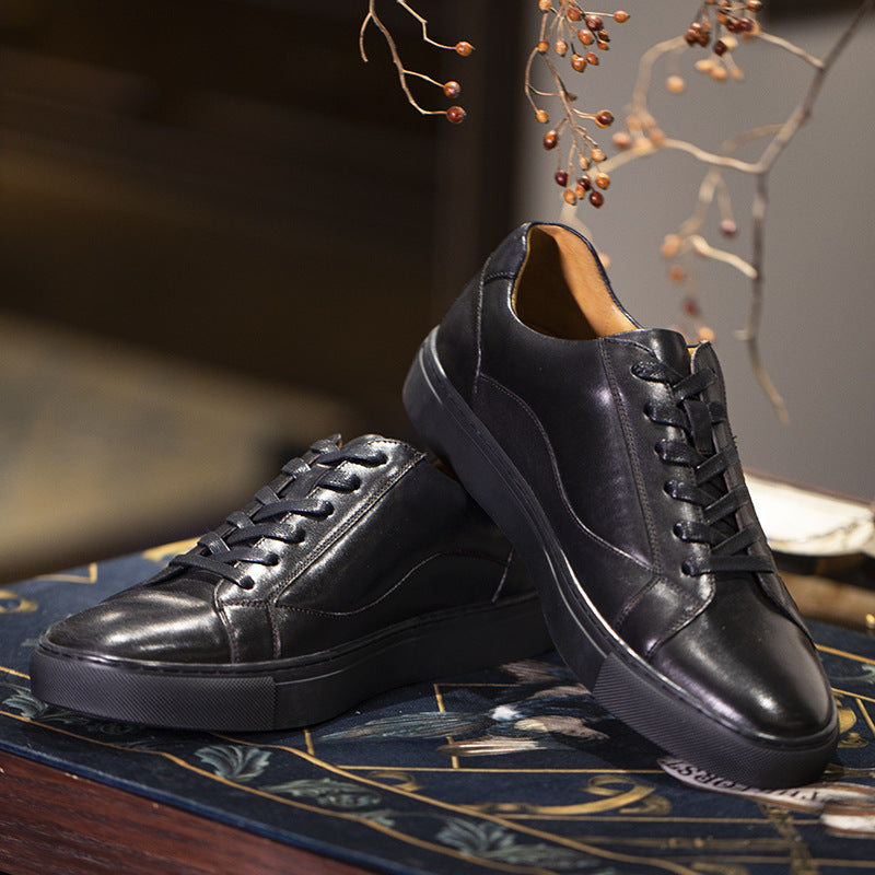 Premium Cowhide Leather Casual Shoes with Colorful Design in Black