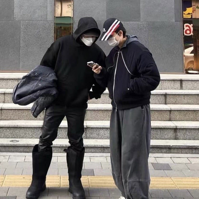 • 1x Sleek Thread-Spliced Black Hooded Pullover