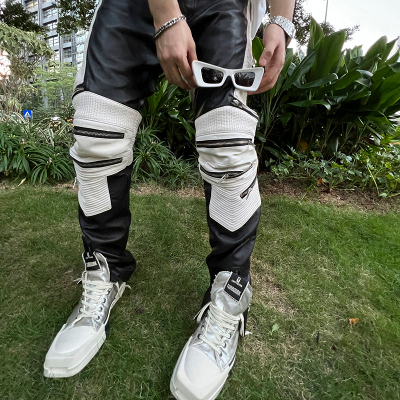 Slim-fit Casual Sheepskin Leather Zip Trousers for Men