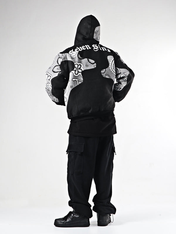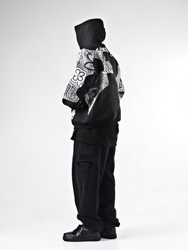 Stylish Double Layer Cashew Flower Jacket with Hood - Jacquard Pattern, Loose Fit, Full Sleeves - Women's Winter Outerwear.