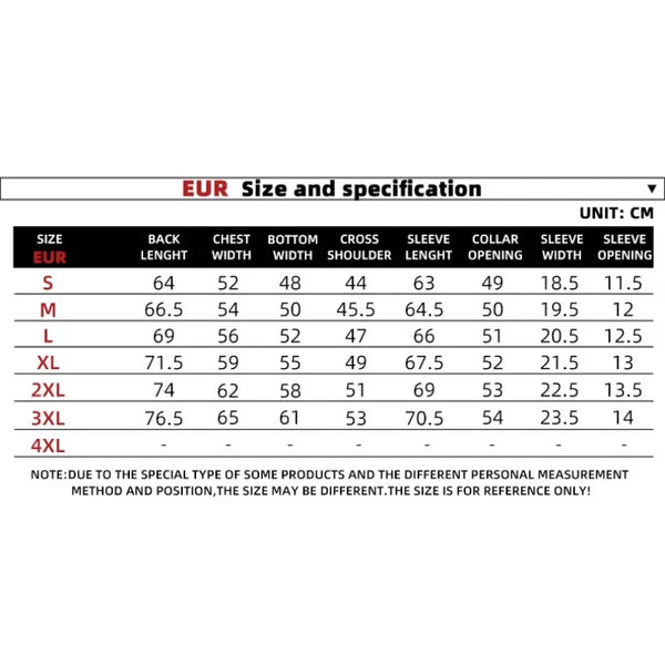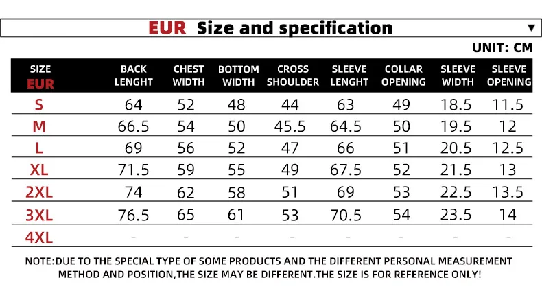 | 3XL | 122–128 | 48–50.5 | 108–115 | 42.5–45.5 | Extended |