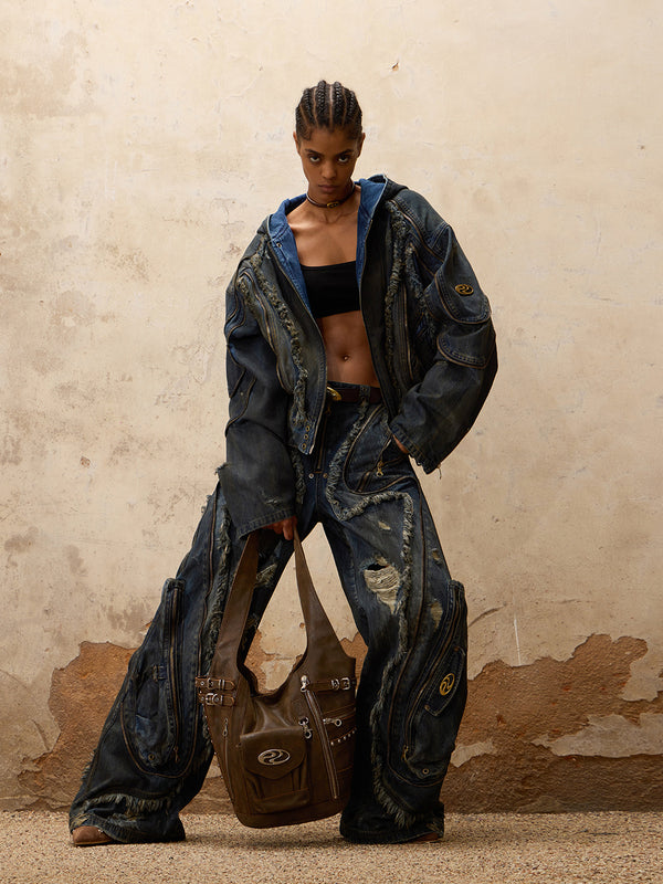 Stylish Mid-Waist Stonewashed Blue Jeans for Ladies - Fashionable and Trendy Casual Outfit - Loose Straight Cut - Cotton - PERSONSOUL.