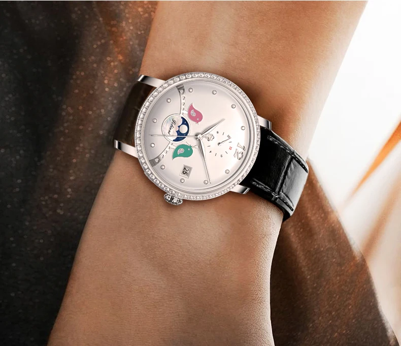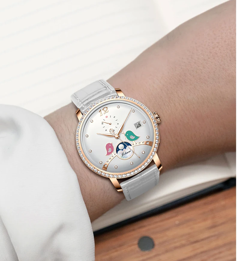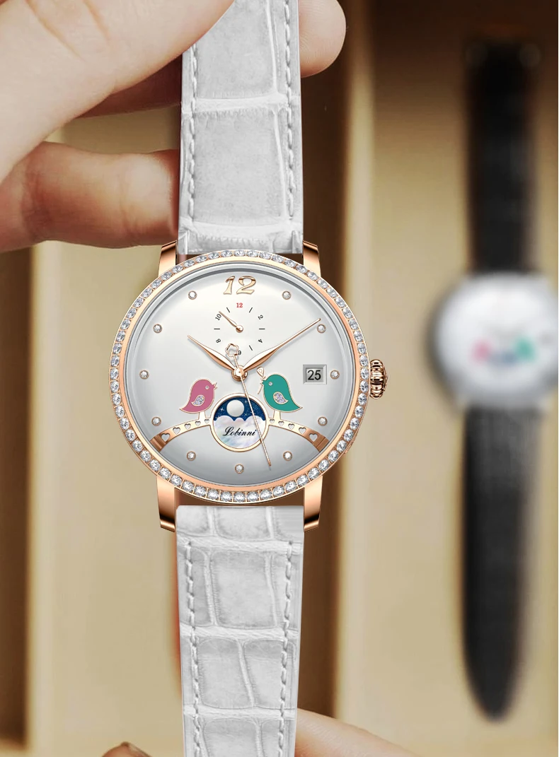 Designed for the discerning woman, this watch isn't just a time-telling device; it's a statement of intent. Crafted from the finest materials, the LOBINNI Timeless Whisper blends functionality with a classic aesthetic that complements every occasion. Whether leading a boardroom or attending a gala, the seamless integration of its luxurious leather band and sleek stainless steel casing ensures this timepiece is as versatile as it is beautiful. The refined, numberless dial invites curiosity, making every glance a moment of discovery.