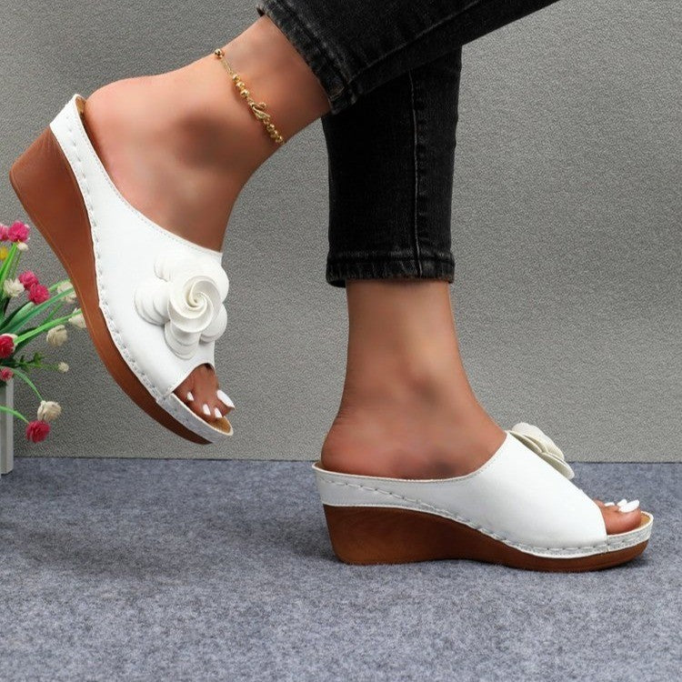 Trendy Floral Peep Toe Wedge Sandals for Women in White and Khaki - PU & Rubber Material - European & American Style - Summer Fashion