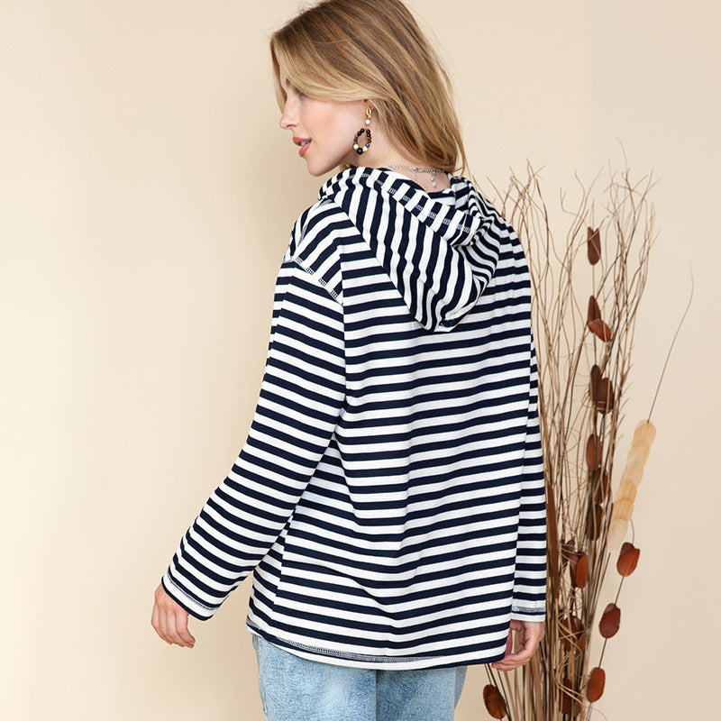 Trendy Shiying Striped Hooded Sweater - Women's Autumn & Winter Fashion