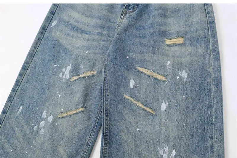 Discover the perfect blend of style and comfort with these Trendy Washed & Ripped Wide-Leg Jeans. Designed for the fashion-forward woman, these jeans feature a unique ink-splashed and distressed finish, creating an effortlessly chic look. The wide-leg cut ensures a flattering fit for all body types, while the high-quality cotton blend offers both durability and stretch for all-day comfort. Whether dressing up for an evening out or keeping it casual for a day in town, these jeans are your go-to wardrobe staple.