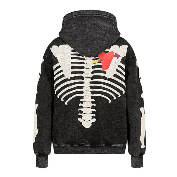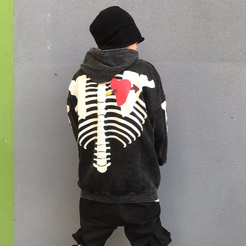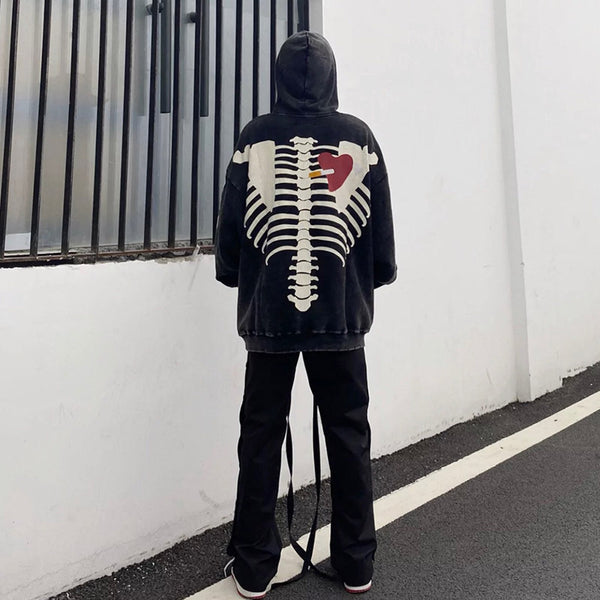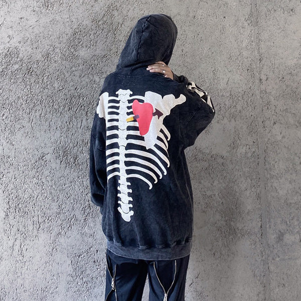 Unique Bone-Heart Printed Hoodie – Casual & Comfortable